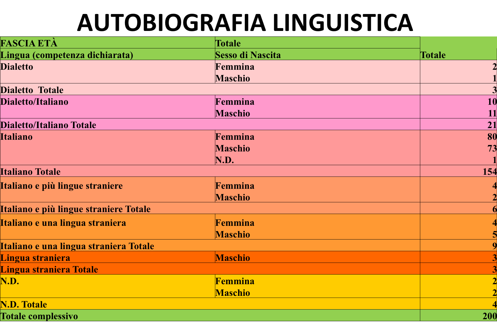 | Totale | 202 |